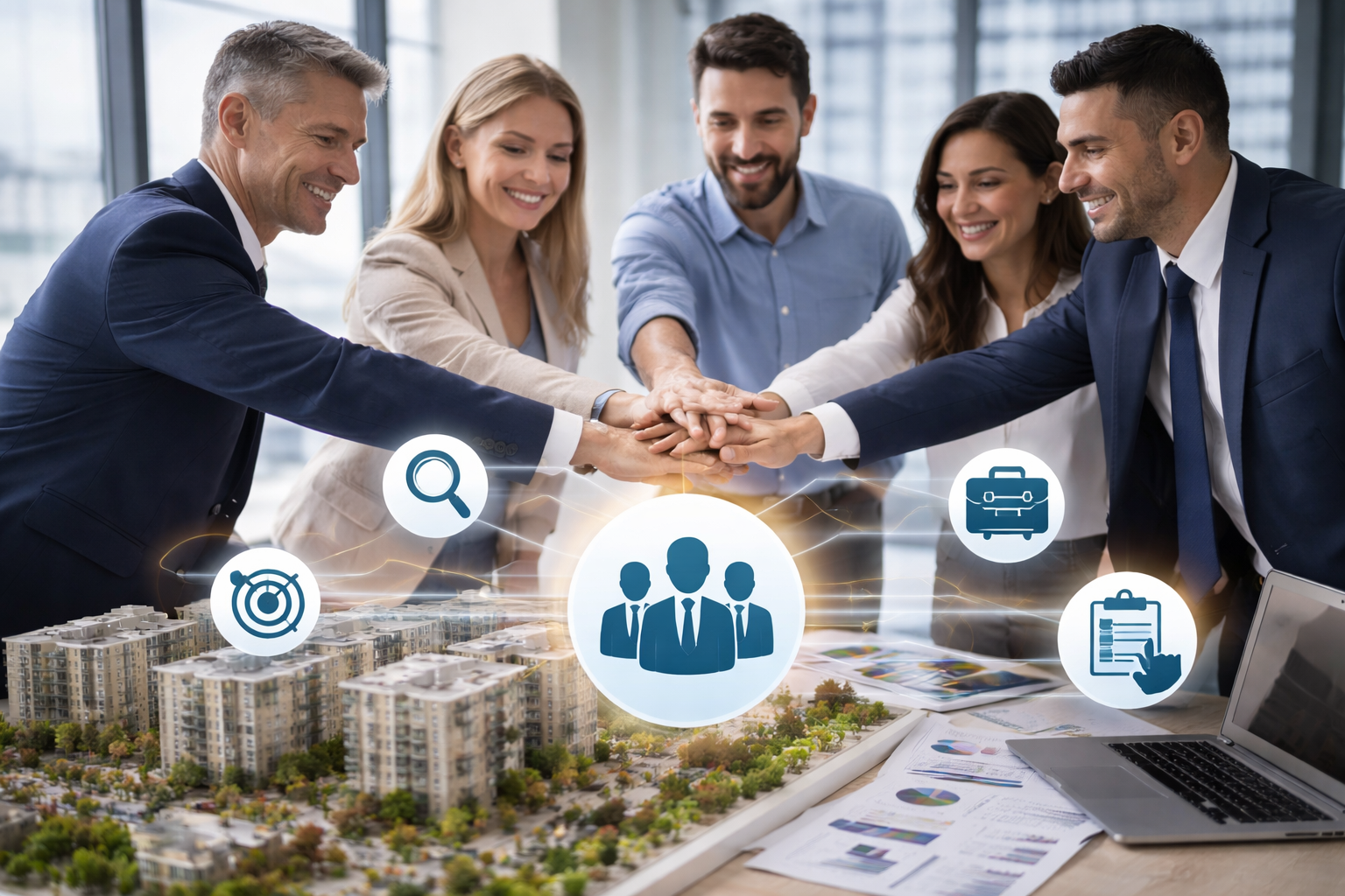 Projelerin yerel pazarda hızlı ve doğru şekilde satışa sunulabilmesi için profesyonel satış organizasyonları kuruyoruz. Satış ekipleri, kampanya stratejileri ve müşteri yönetimi süreçlerini etkin şekilde yönetiyoruz.